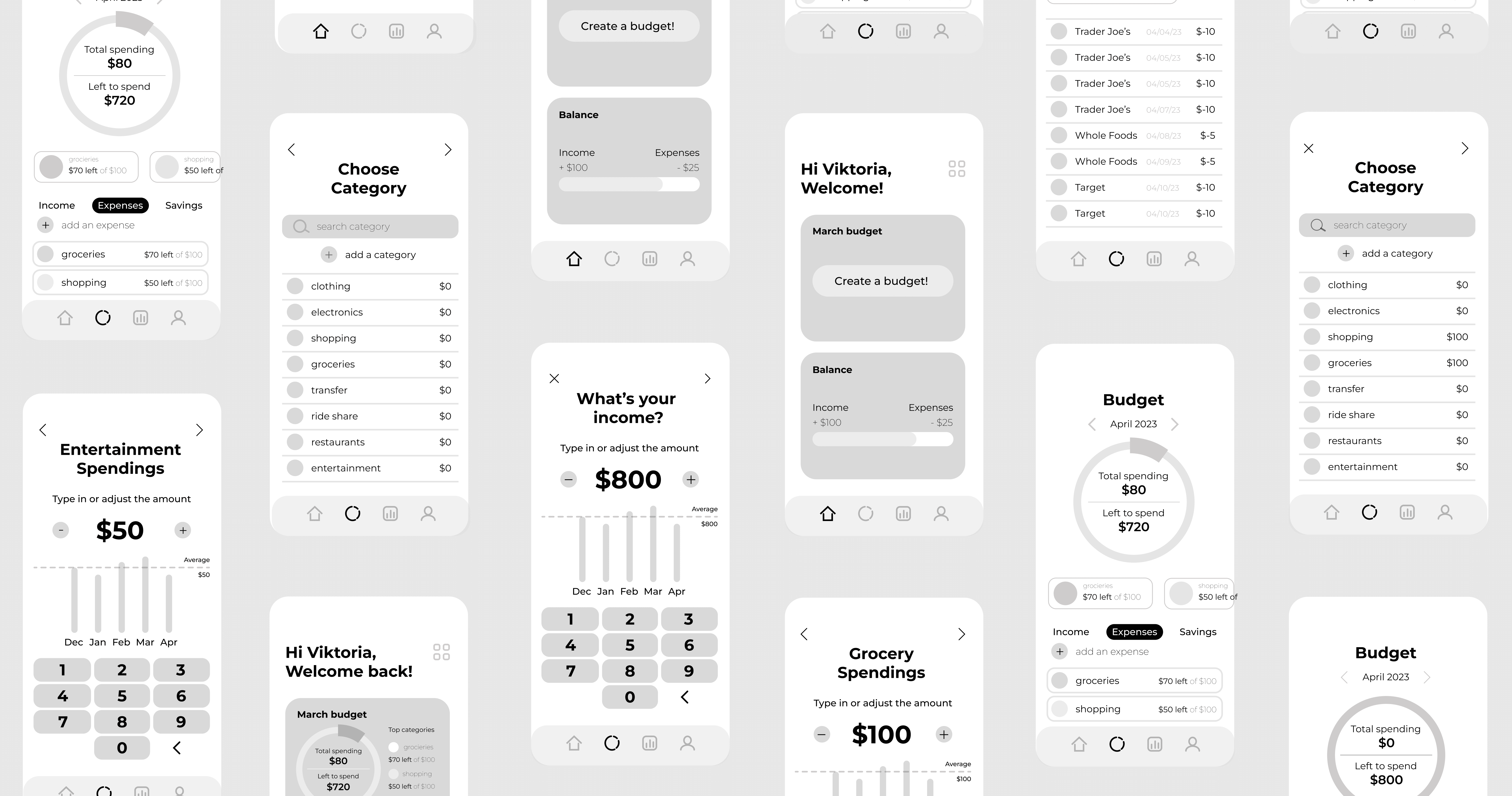 With all the research and info I gathered, it was time to start designing the app's crucial parts, like the main budgeting info balance.