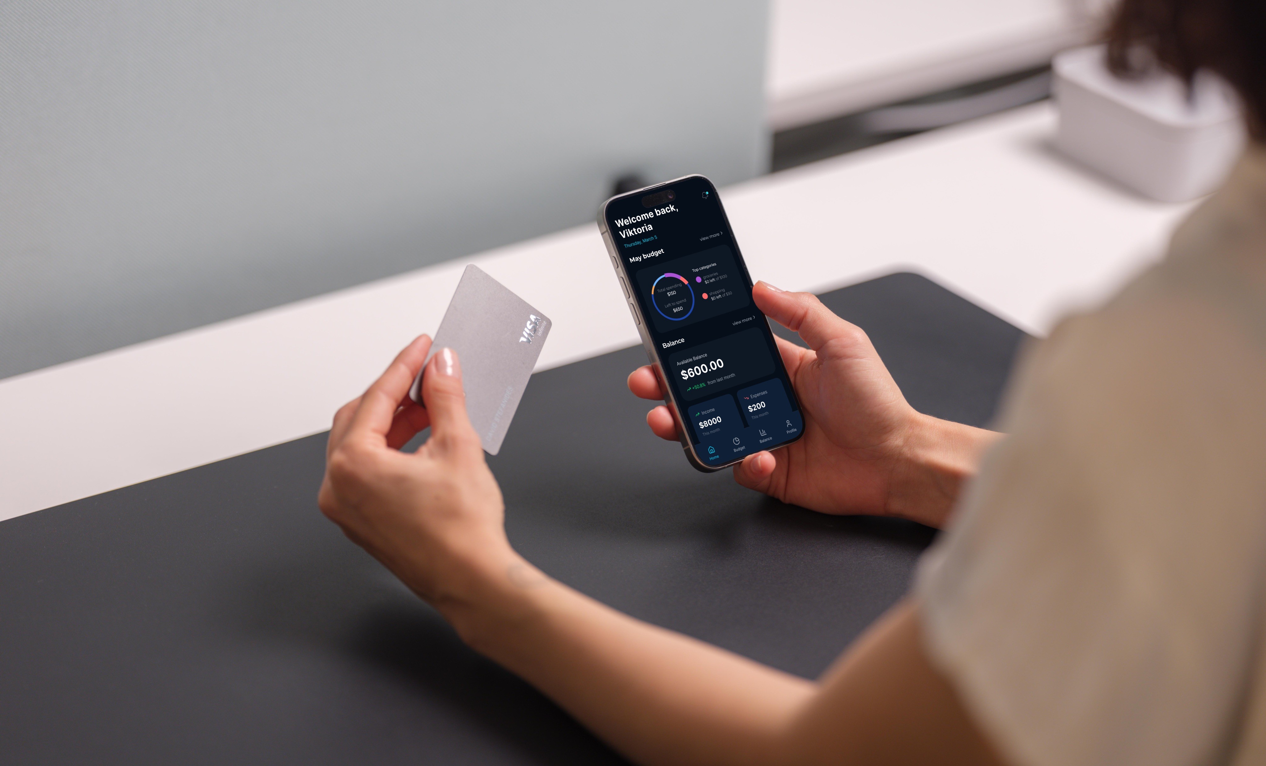 To make it easy to understand your finances, you should have your budget and balance right on the home page.