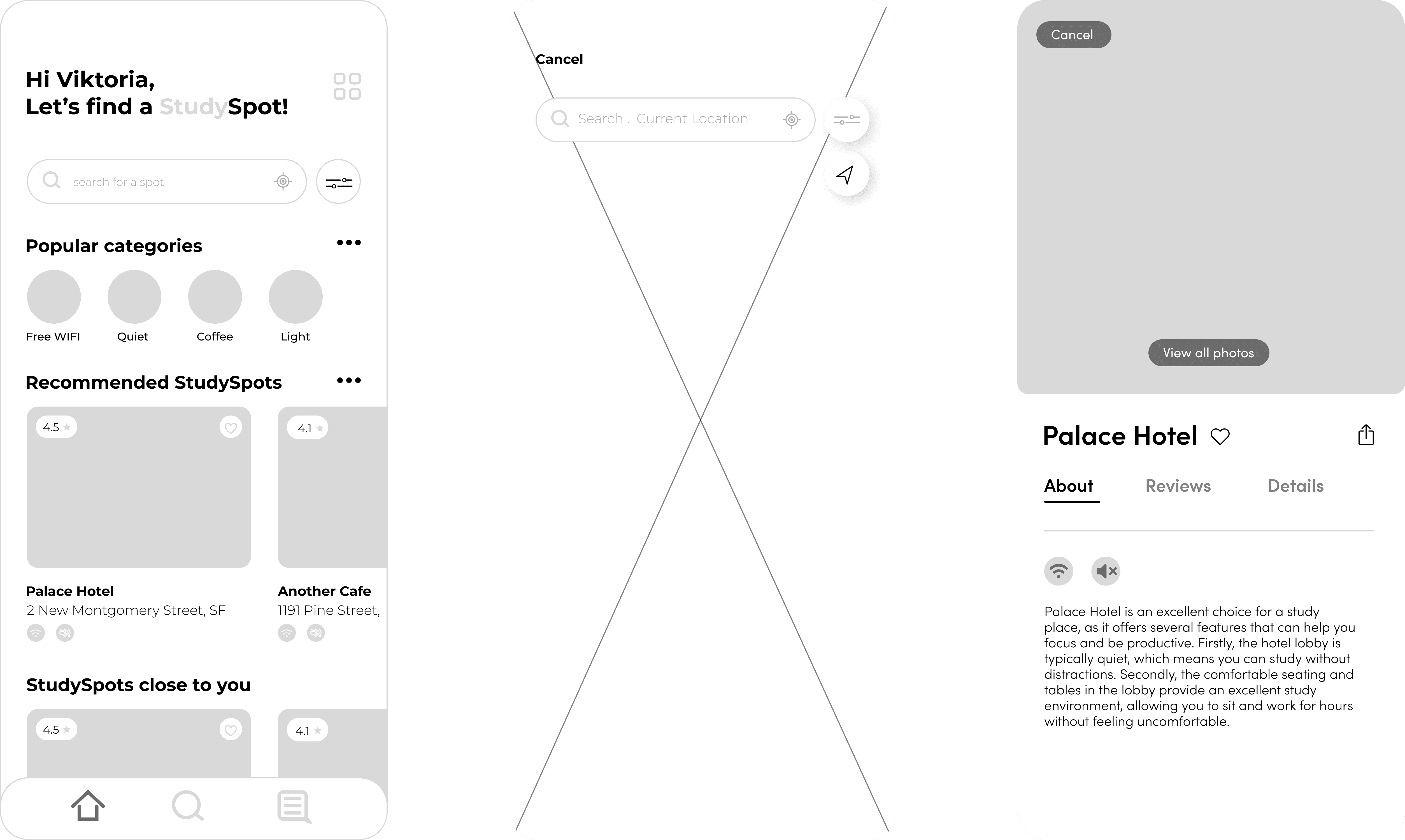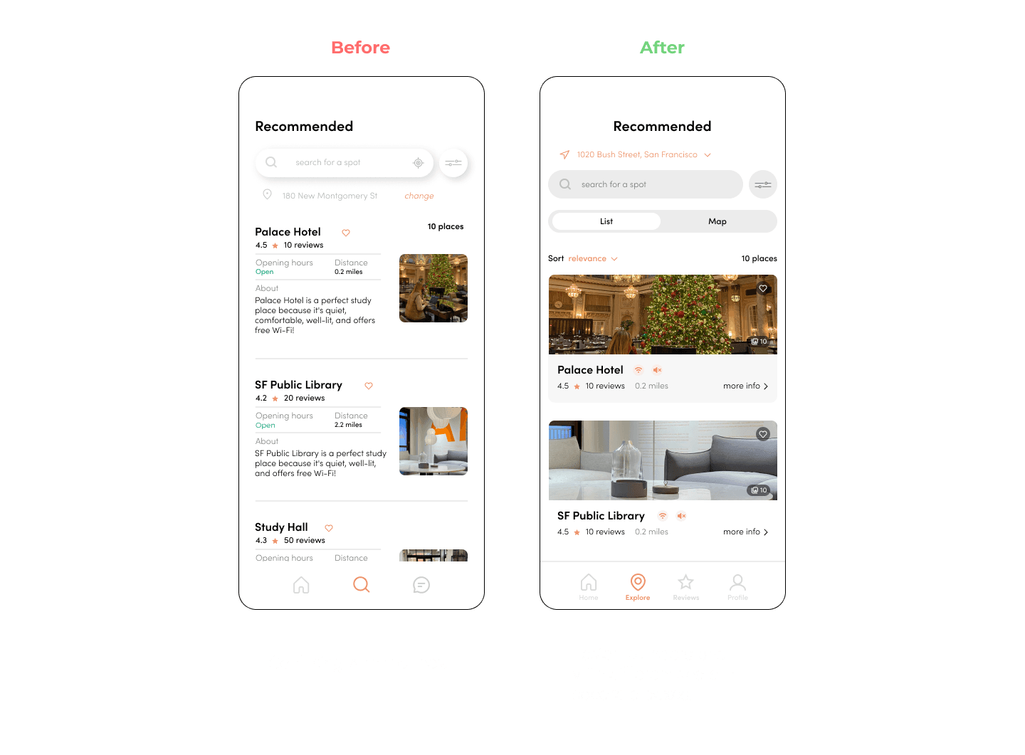 Detailed information about study spots, including photos, descriptions, and user reviews, is important to students. Implementing features that allow users to share their experiences and rate study spots will provide valuable insights for other users.